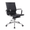 Executive high back chair made with black bonded leather comes with torsion knee tilt mechanism. Chrome spider base, chrome arms with leather cover.