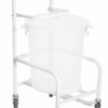 Mobile bedpan & urinal stand. Stainless steel construction. Facility to carry 6 bedpans and 5 urinals. 2 stainless steel drip trays, one under the bedpans and one under the urinals. Mounted on 4 x swivel castors. (Dimensions; width 440mm; length 1077mm; height 1255mm