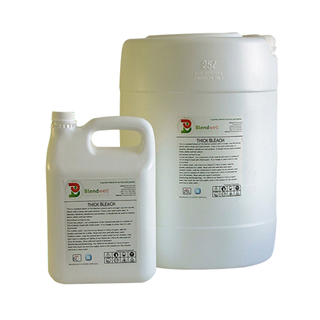 To test fast colours – Cut a small piece of fabric and soak in a solution of 125 ml Thick Bleach mixed with 250ml water. Should no change in colour occur then it is safe to proceed. For a whiter wash – Mix 15ml of Thick Bleach in 5 litres of water, add the laundry and leave for a while. Wash and rinse well with clean water. Stubborn stains – Soak the stained item in warm water for ten minutes, rinse then soak in a solution of 100mls of Thick Bleach per 5 litres of cold water for 10 to 20 minutes. Rinse well and repeat if necessary. Disinfecting and deodorizing – Mix 100ml of Thick Bleach in 5 litres of warm water then wash the item thoroughly, leave in the solution for five minutes and rinse in clean water Never use this product in its concentrated form directly onto clothes. Open the container very carefully and avoid spilling. Do not use on waffle, pique, satins, rayon, woolens, etc. |